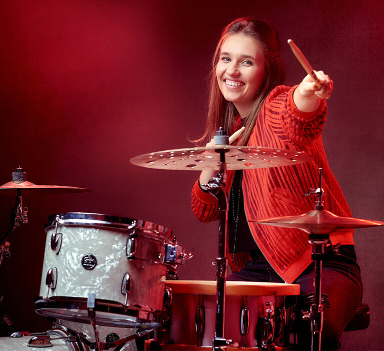 Wiktoria Bialic is a 4x Grammy Noms recordings for Allison Russell - "The Returner" record. She recorded drums for the number 1 song in Poland (for the artist SARSA). She has recorded drums for Grammy winning musicians such as Ondre J. Pavic, Alex Marley, Maati Baani and other various British, Indian, Scottish, Polish, American and Puerto Rican producers and artists. Wiktoria was also a champion of the Hit Like A Girl contest in the 2021. She has played at drum festivals such as PASIC (USA), Bag Show (PARIS), The UK Drum Show, Silesia Drum Festival (Poland),