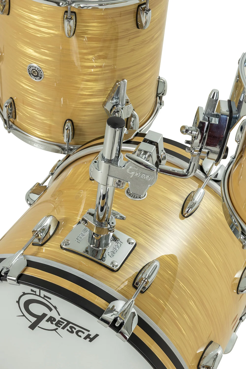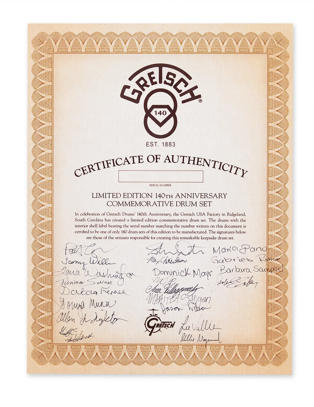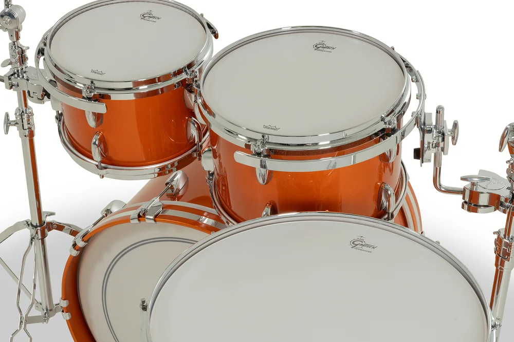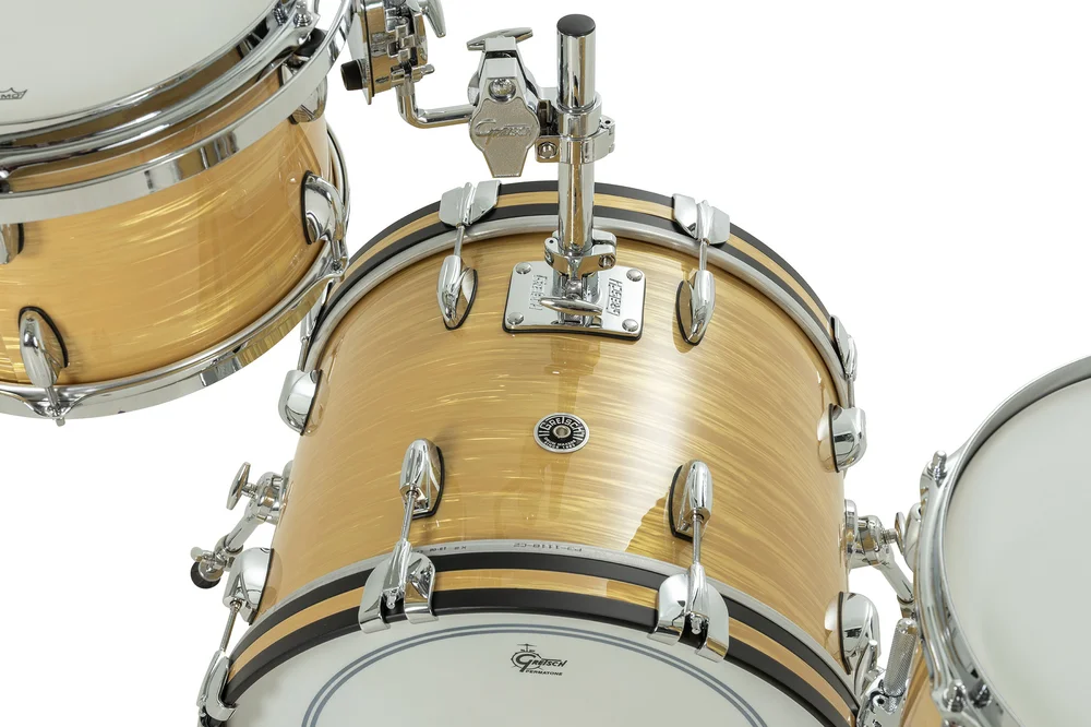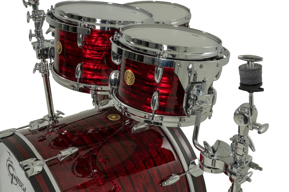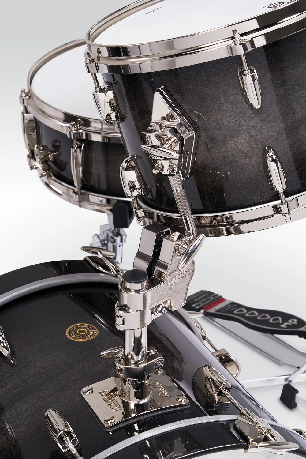 At the heart of each drum is the legendary 6-ply Gretsch-formula maple/gum shell with its 30-degree bearing edge, the exclusive "Silver Sealer” interior finish and rugged 4mm die cast hoops. The custom drum building team in Ridgeland, South Carolina uses time-tested, classic finishing techniques such as hand-rubbed stains and nitro-cellulose lacquers. Gretsch’s nitron-finishes are some of the world’s finest, offering additional durability and a vintage look requested by many top drummers. Gretsch takes pride in knowing that USA Custom owners can sit down every day and literally play the kit of their dreams.