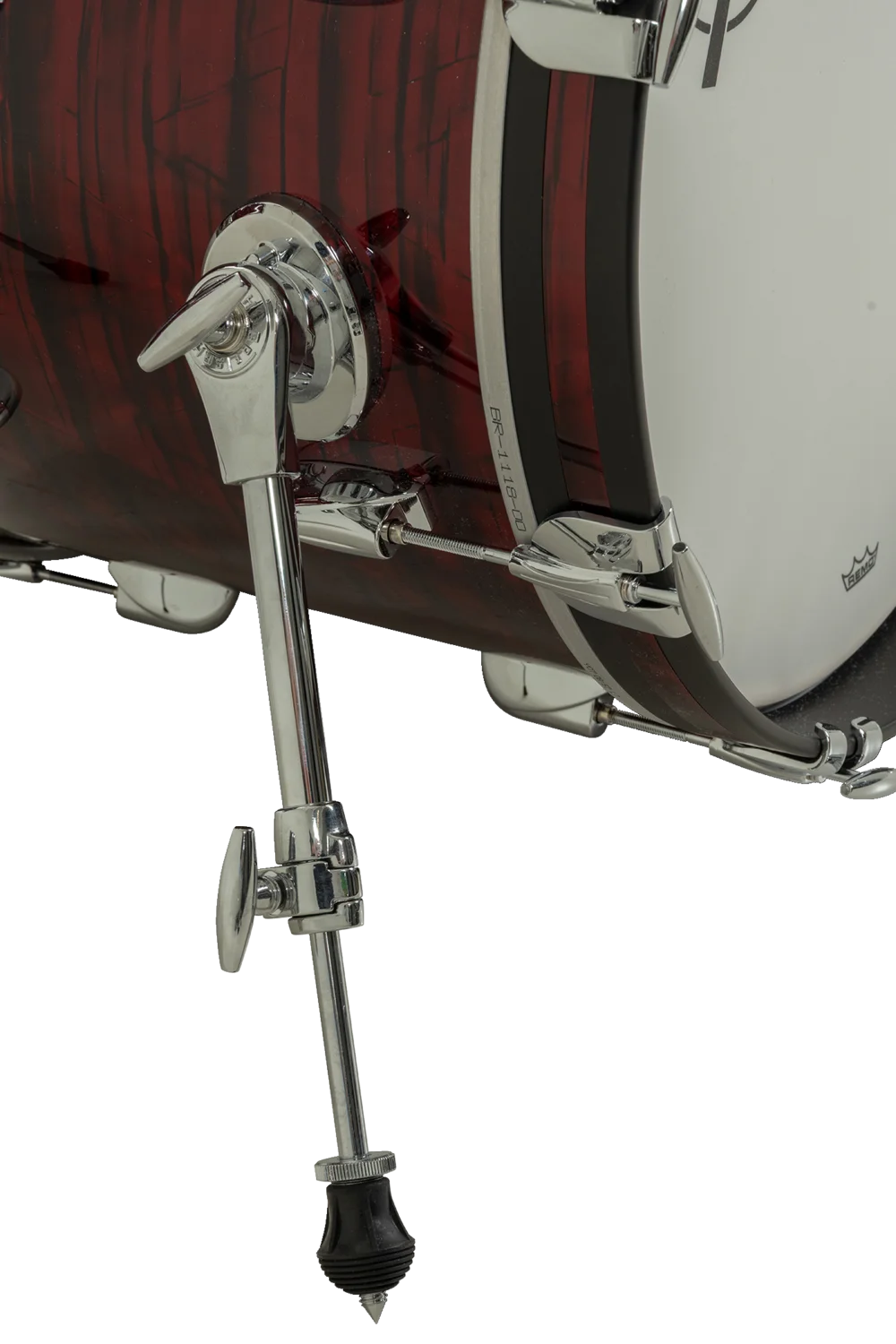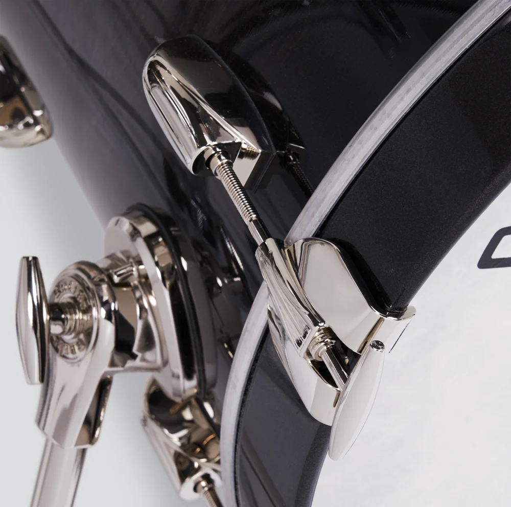 Specifications: Bass drum with tom mount and single tom holder, T-rods, Satin Black hoops w/PSF Inlay.