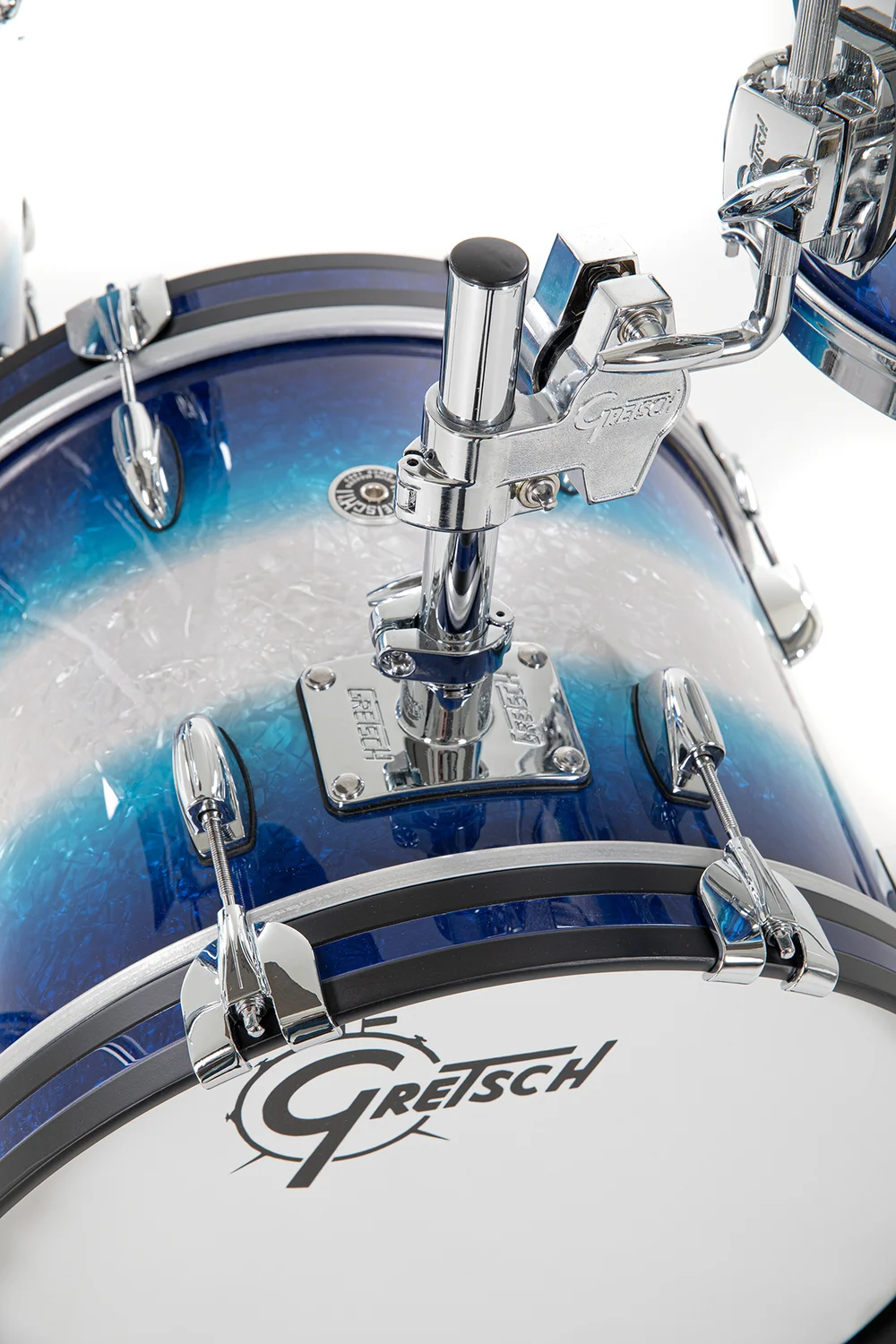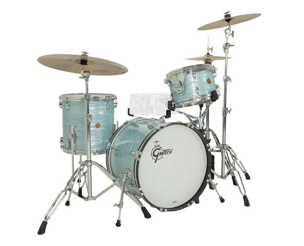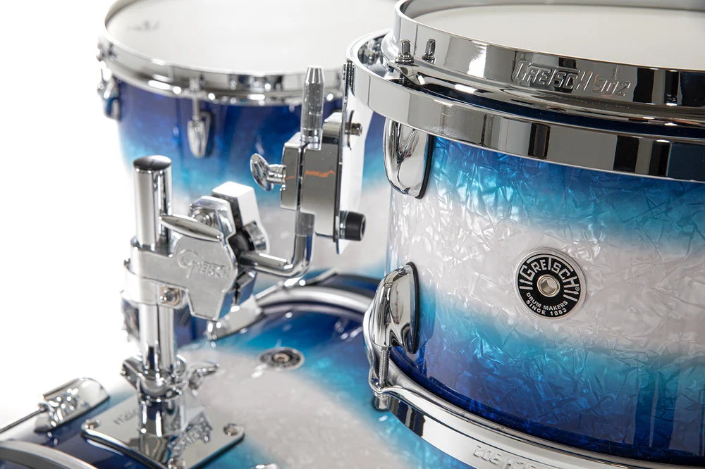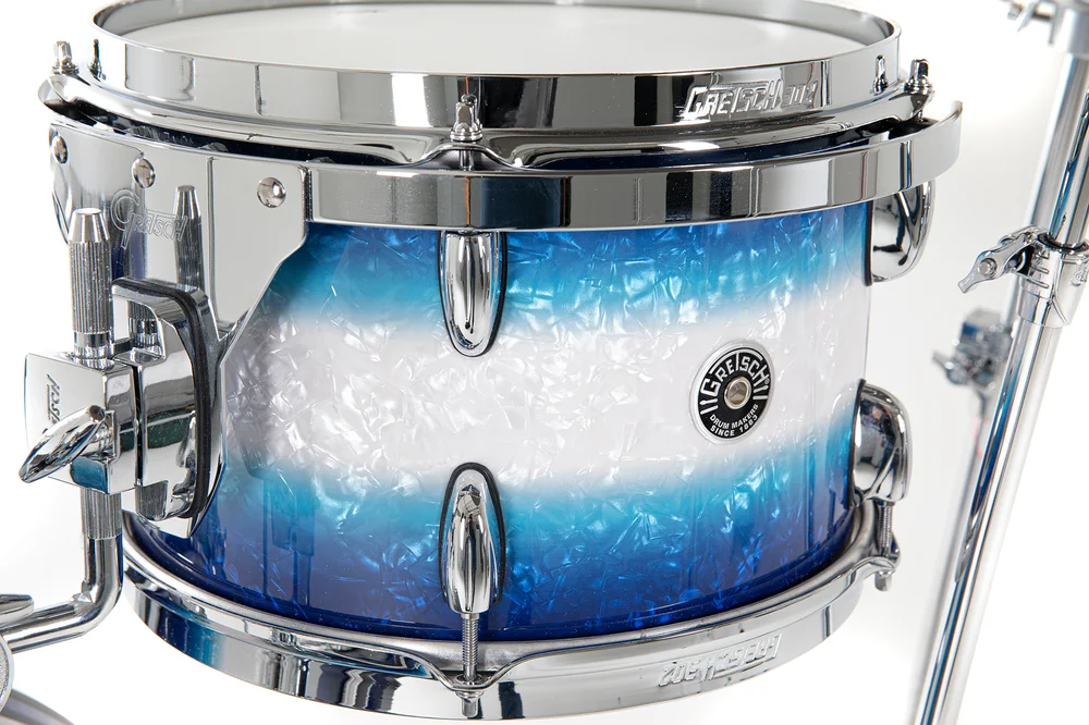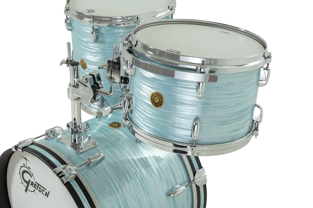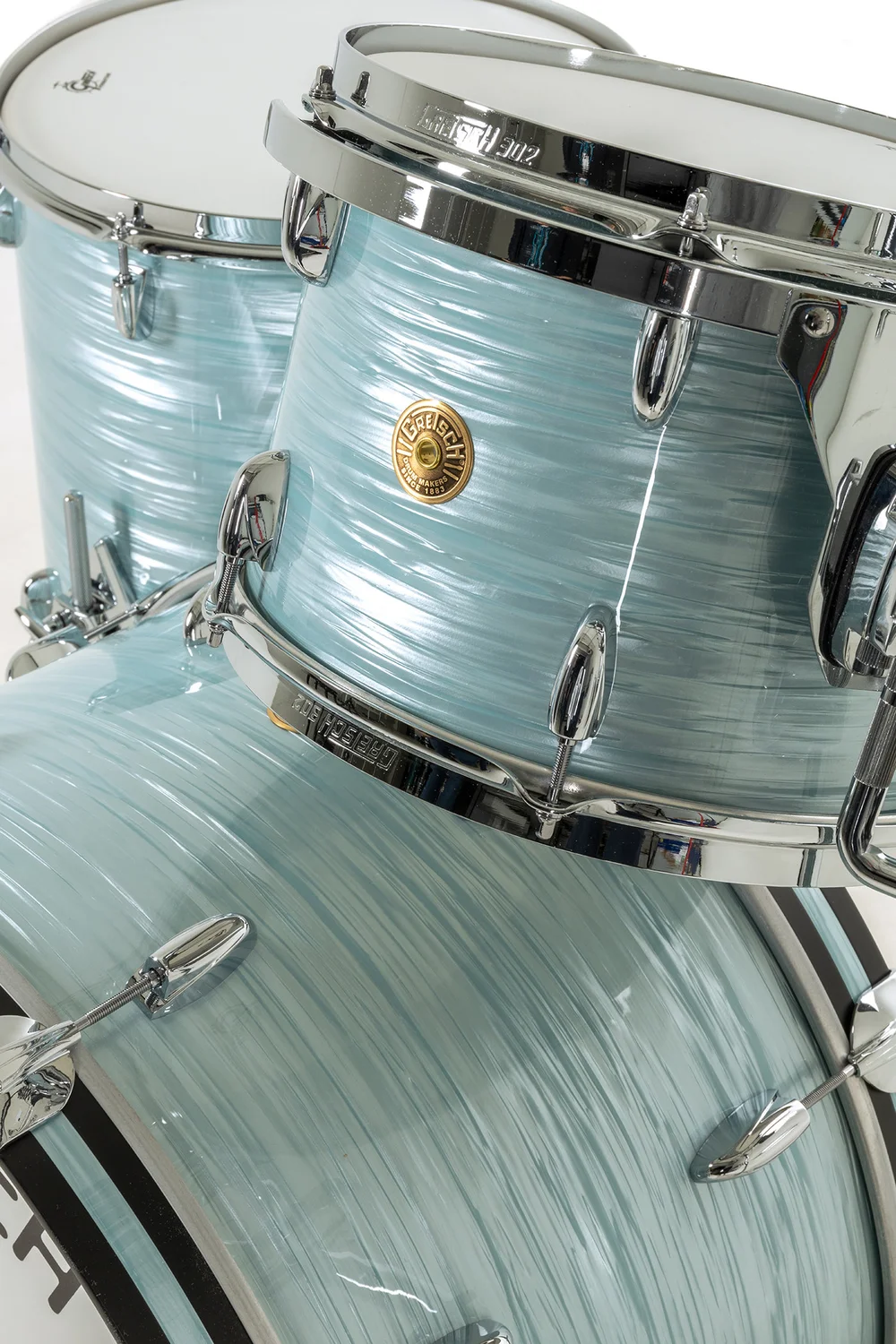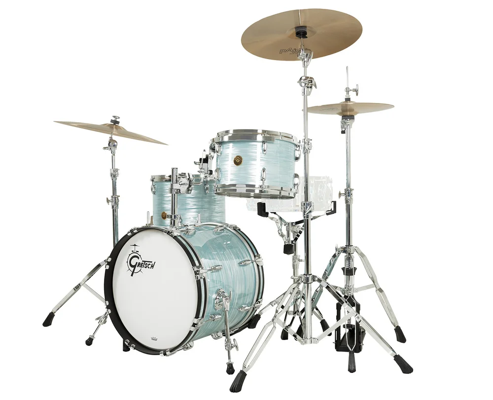 Brooklyn Series | Finish: Satin Ice Blue MetallicSizes: 10x7 TT, 12x8 TT, 16x14 FT, 22x18 BD | Specifications: Bass drum undrilled.
