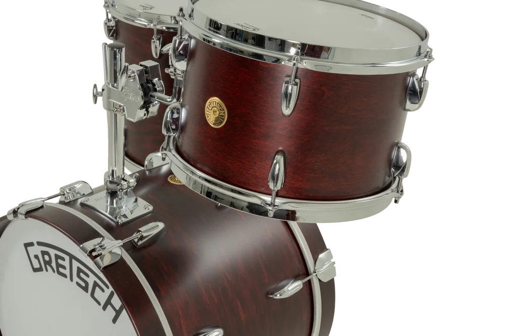 Brooklyn Series | Finish: Satin Mahogany Sizes: 12x8 TT, 14x14 FT, 18x14 BD | Specifications: Bass drum with tom mount and single tom holder. No additional hardware and no cymbals included.