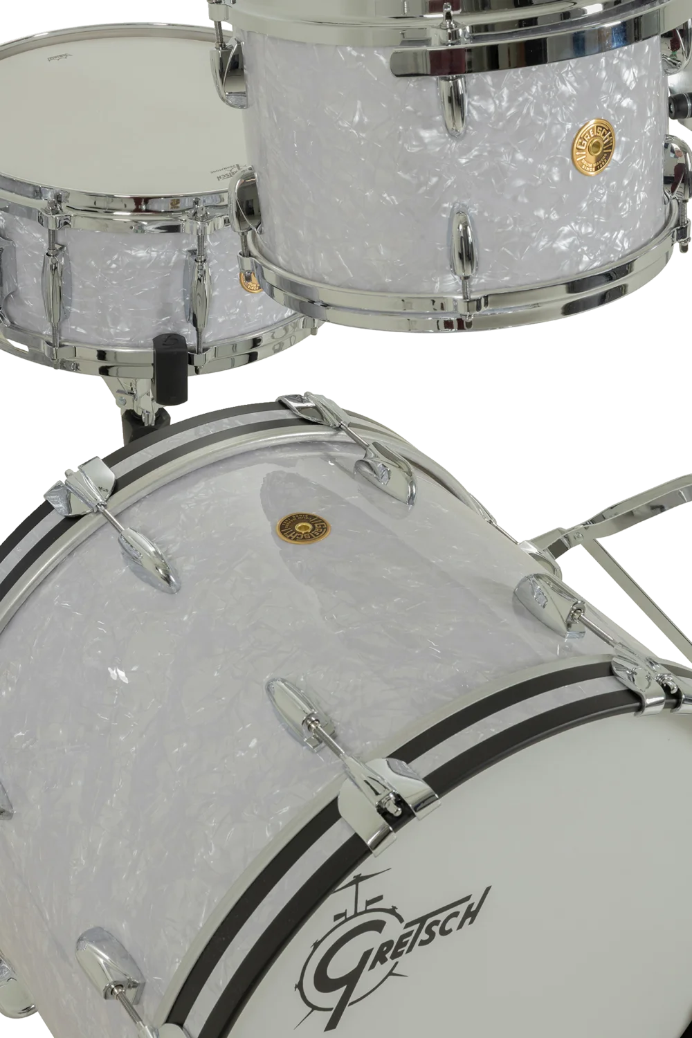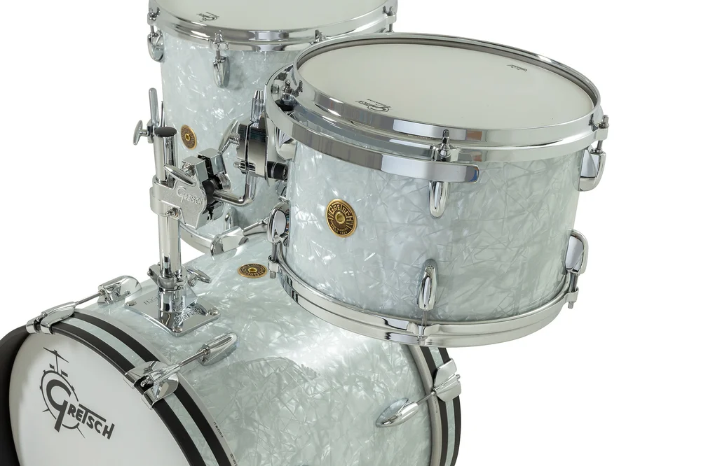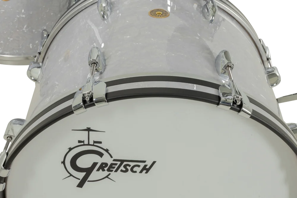 USA Custom | Finish: Nitron - 60´s Marine PearlSizes: 10x7 TT, 12x8 TT, 16x16 FT, 22x16 BD | Specifications: All standard hardware, Bass drum undrilled.