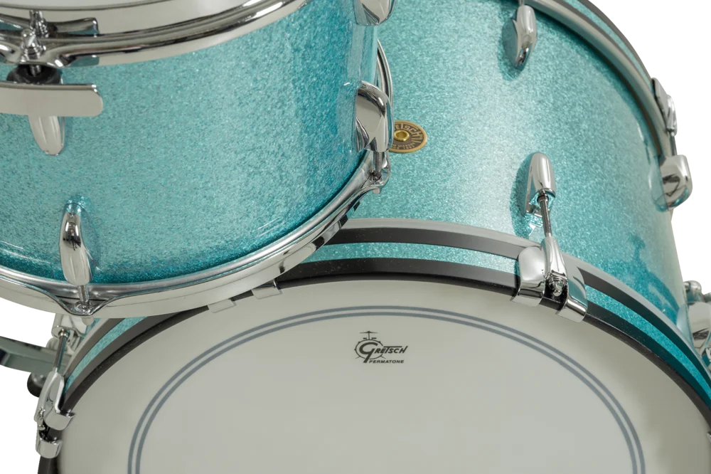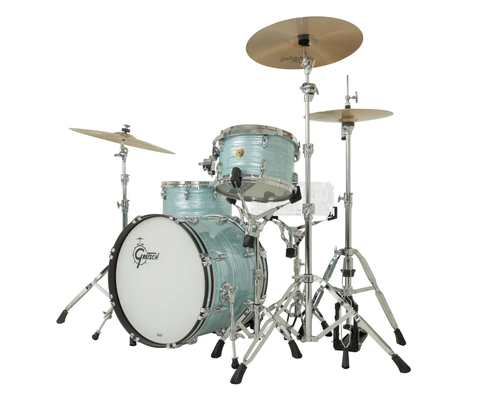 USA Custom | Finish: Nitron - Turquoise PearlSizes: 10x7 TT, 12x8 TT, 16x16 FT, 22x16 BD | Specifications: All standard hardware, Bass drum undrilled.