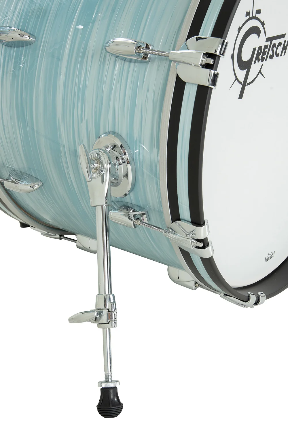 Broadkaster shells are made with our North American maple/poplar/maple formula. Each shell includes an interior-ply scarf joint that supplies added structural integrity to thin, musical shells. Like all USA-made Gretsch drums, shell interiors are finished with classic Gretsch Silver Sealer. The shell is hand finished with a roundover bearing edge, which allows greater surface contact between the bearing edge and drumhead. The result is tone that is incredibly deep, rich and warm.