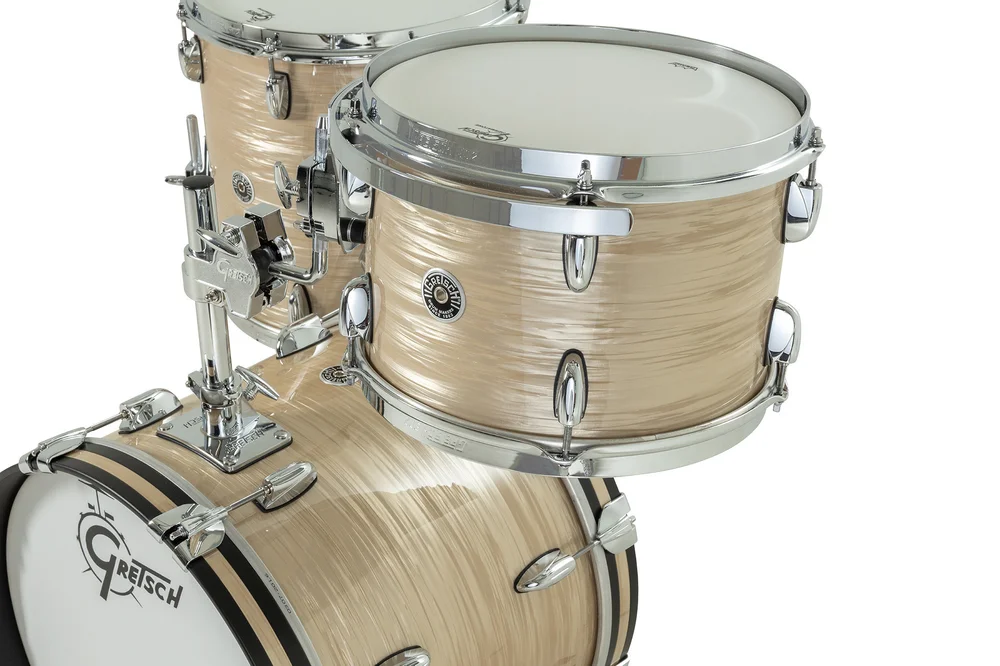 Brooklyn drums feature 6-ply North American maple/poplar shells and are made slightly thicker than Gretsch’s USA Custom Drums and have a 30-degree bearing edge. Shell interiors are finished with classic Gretsch Silver Sealer.