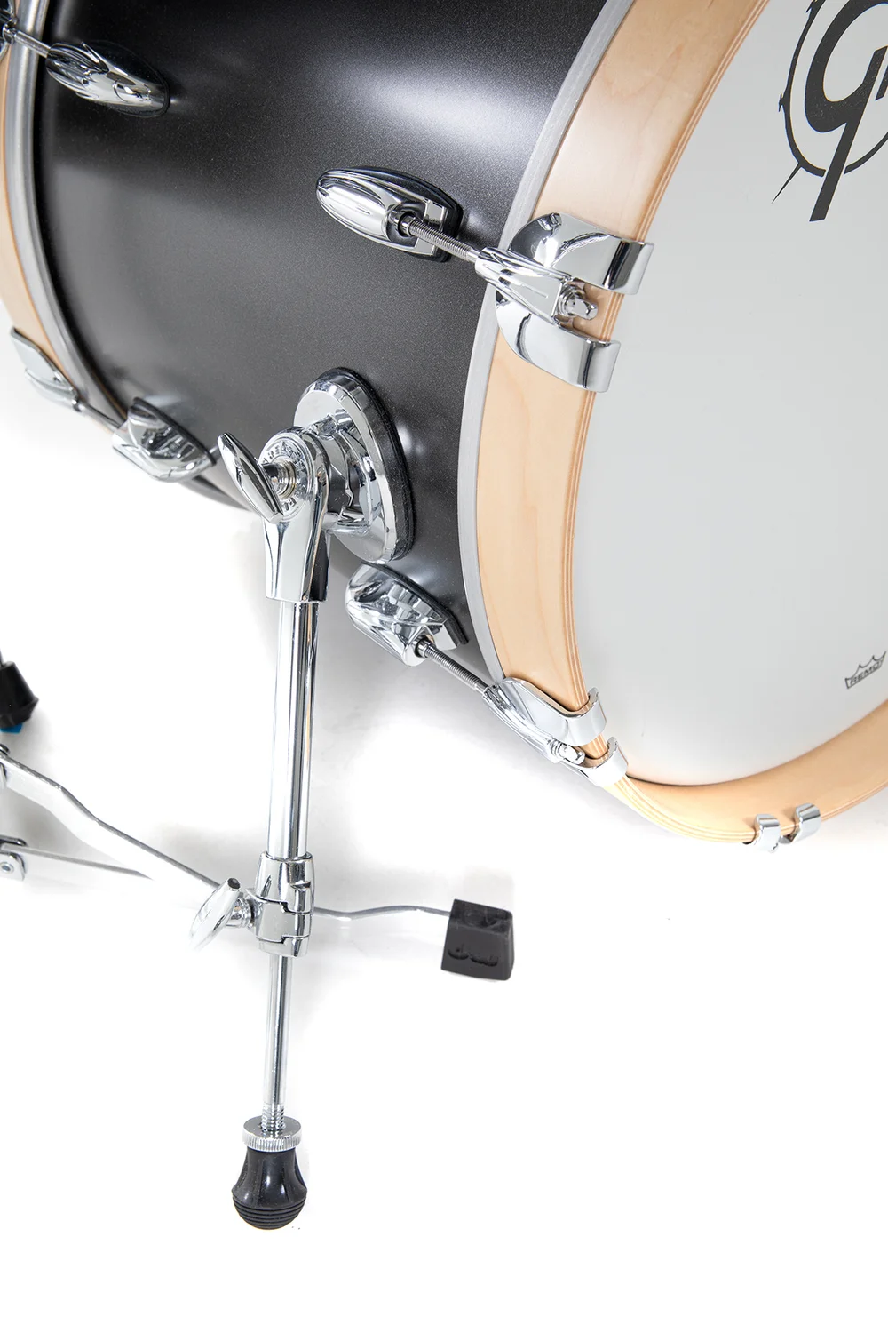 Specifications: Bassdrum with Tommount and single Tomholder, Satin Black Hoops with SG Inlay.
