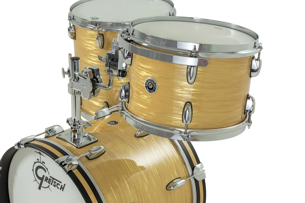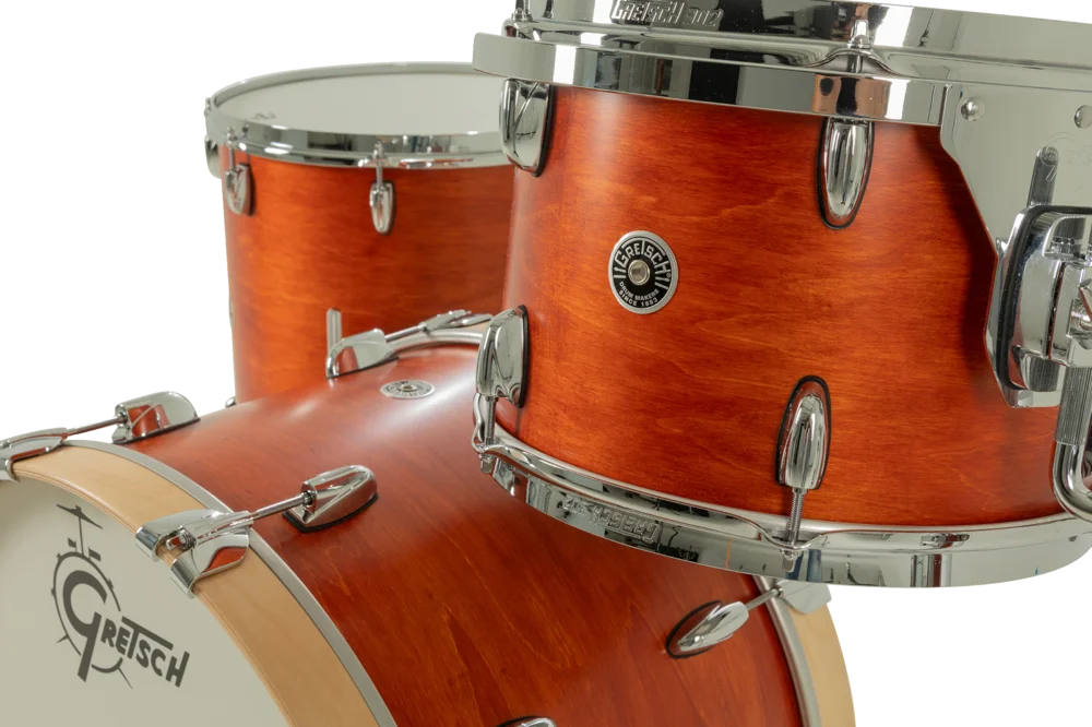 Broadkaster Series | Finish: Satin NaturalSizes: 12x8 TT, 14x14 FT, 18x14 BD | Specifications: Bass drum with tom mount and single tom holder, Rack tom with G4825 directly mounted to shell (no GTS!).